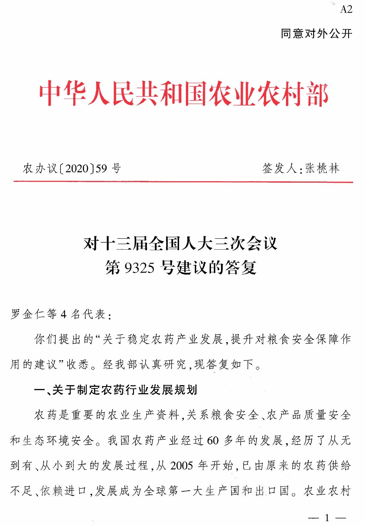 你們提出的“關(guān)于穩(wěn)定農(nóng)藥產(chǎn)業(yè)發(fā)展,提升對(duì)糧食安全保障作用的建議”收悉。經(jīng)我部認(rèn)真研究,現(xiàn)答復(fù)如下。?