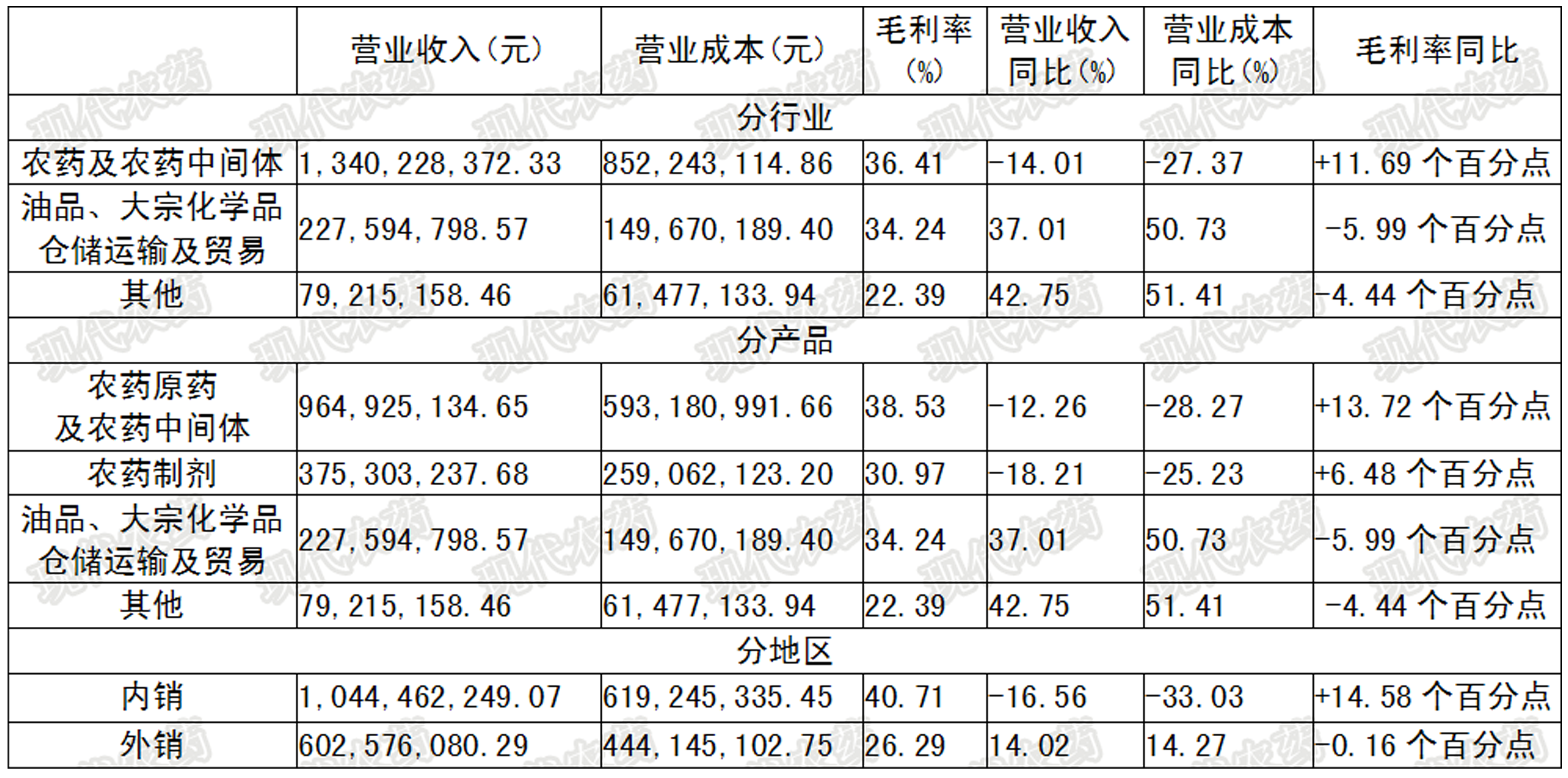 ??? 公司主營產品包括多菌靈、甲基硫菌靈等殺菌劑,敵草隆、草甘膦等除草劑以及氨基甲酸甲酯、異氰酸酯、鄰苯二胺等精細化工中間體。
