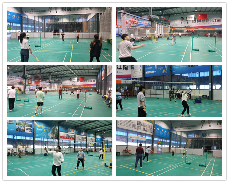 ? ? ? ?是日下午,全體參賽者乘班車來到活動場館,簡單的熱身運動后,通過自由配對、分組對抗等方式,海利爾健兒們在球場上互相切磋、一較高下。有的同事具有專業水準,打球快、準、狠,讓人不禁拍手叫好;有的場地上,搭檔雙打的兩人,你攻我守、配合默契,與對手激戰正酣,每個人的身上都充滿了青春的魅力,每個人的臉上都洋溢著燦爛的笑容。更有很多新加入海利爾大家庭的伙伴們參與其中,其樂融融的活動氛圍,顯得格外溫馨!