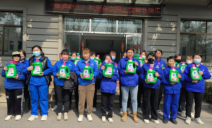 ? ? ? ?活動啟動當日,集團為全體女同胞們送上了美好的節日祝福。一瓶瓶的洗衣液送到家人們手中,芬芳留在心中,希望廣大女員工在工作中保重身體健康,呵護好家庭的幸福和美滿,為海利爾事業持續貢獻巾幗力量。