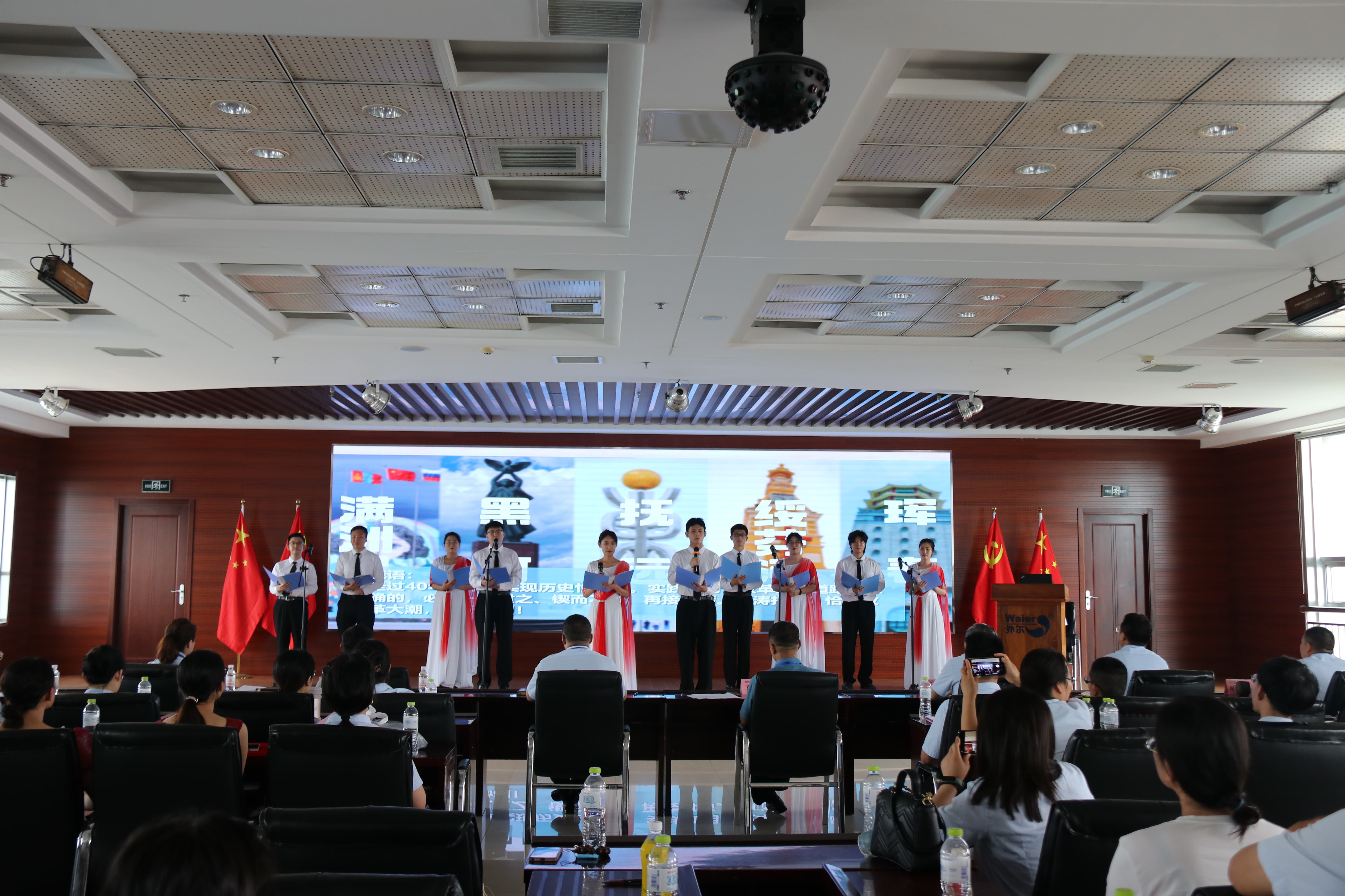 ? ? ? ?重溫紅色經典,走進光榮歲月。在中國共產黨成立101周年之際,為迎接黨的二十大勝利召開,進一步增強“愛黨愛國愛企業”的使命感和責任感,進一步增強企業的凝聚力和向心力,集團在“七一”當天舉辦以“永遠跟黨走,奮進新征程”為主題的詩歌朗誦比賽活動。來自各工廠、子公司的8支代表隊近200人來到集團總部8樓會議室,濟濟一堂、紅心向黨。