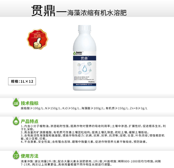 產品名稱 貫鼎—海藻濃縮有機水溶肥